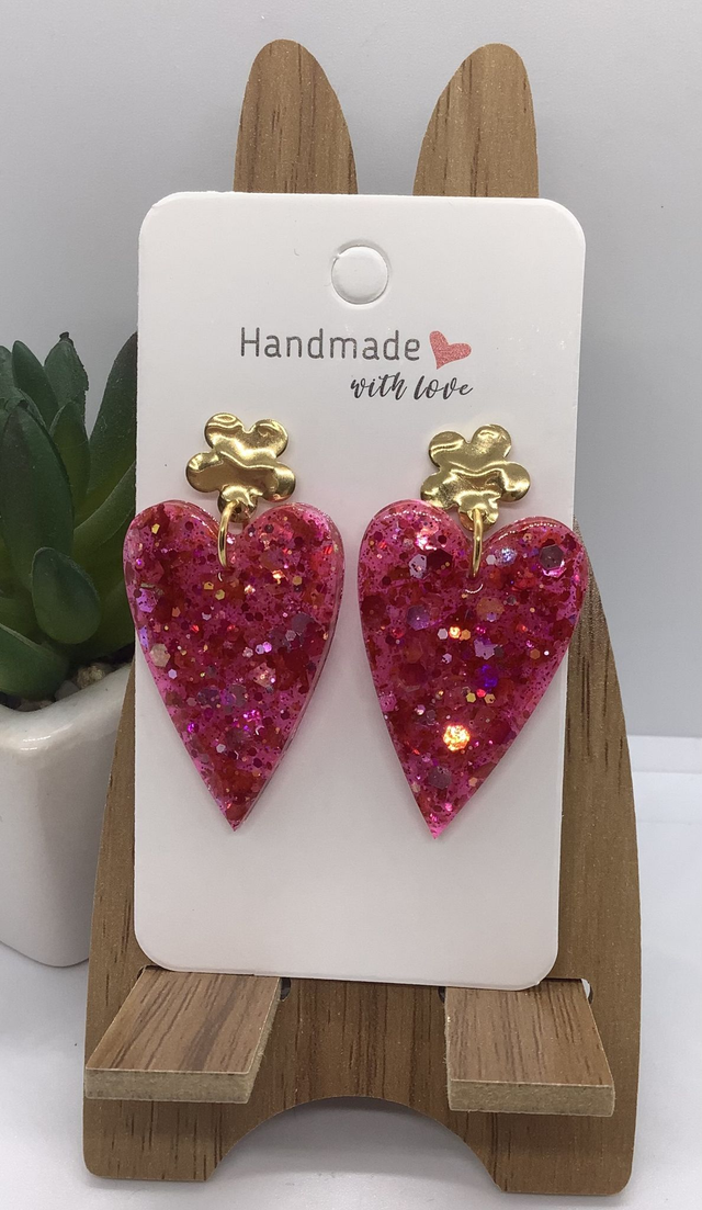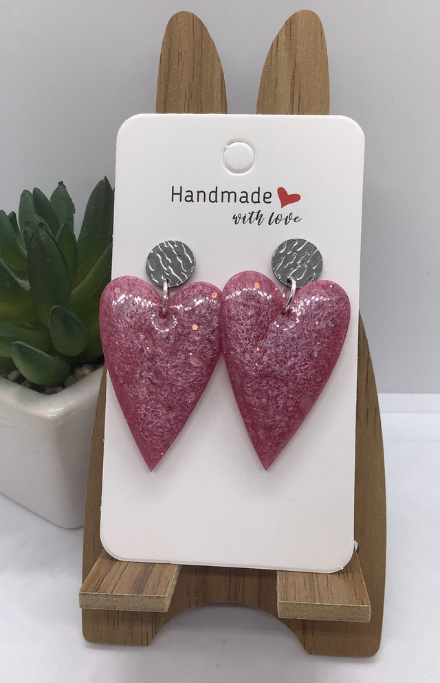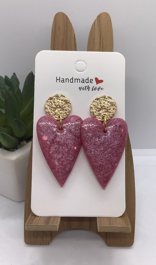 Chaque pendant est un cœur audacieux et généreux, coulé à la main dans une résine rose aux nuances enivrantes.