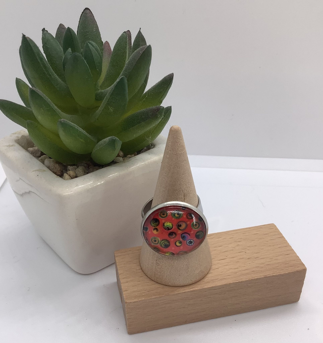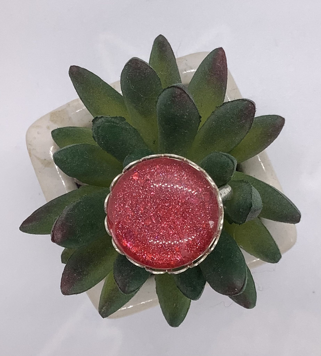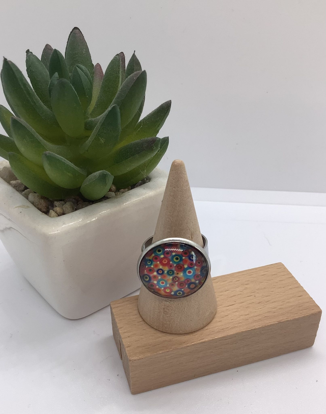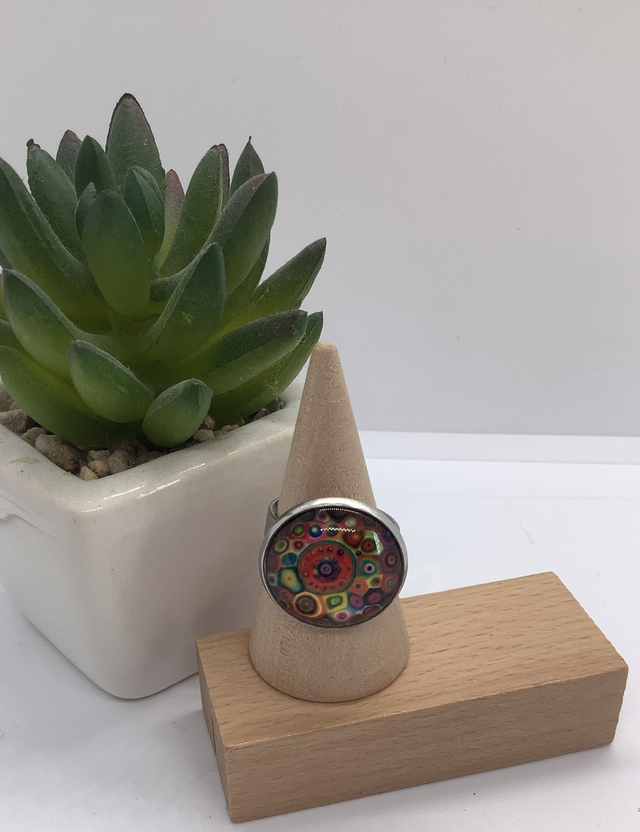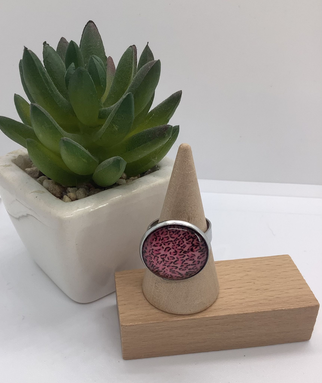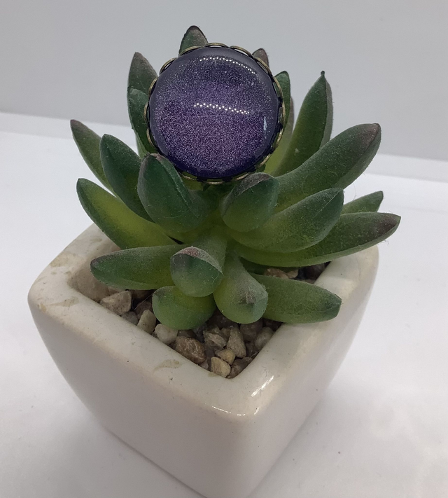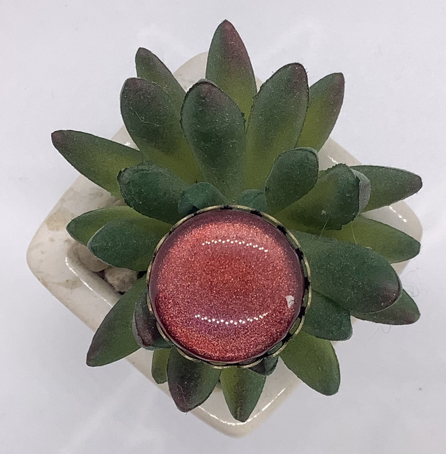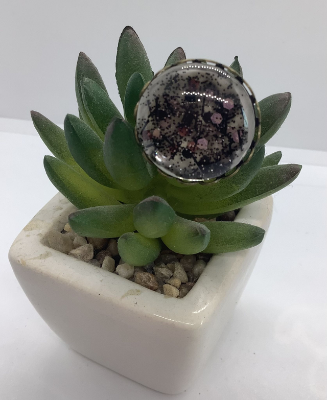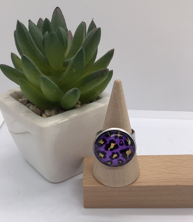Portez un fragment de l'univers au bout de vos doigts avec cette bague audacieuse et mystérieuse. Son large cabochon de forme ronde, magnifiquement serti dans un support en métal, renferme une image hypnotique de nébuleuse. Les couleurs profondes de pourpre, violet et rose se mêlent à des nuages d'étoiles scintillantes, évoquant la beauté lointaine du cosmos. Les autres cabochons sauront également vous séduire.